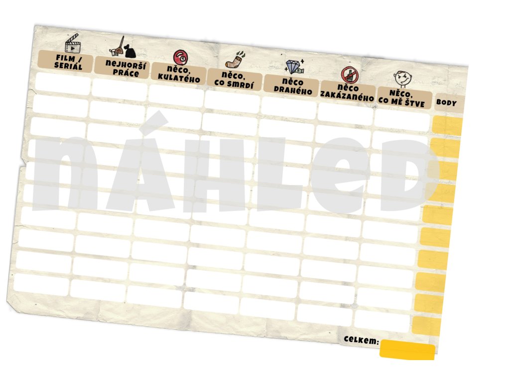 ✅film / seriál ✅nejhorší práce ✅něco kulatého ✅něco, co smrdí  ✅něco drahého ✅něco zakázaného  ✅něco, co mě štve